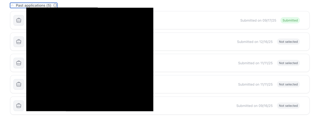 Submittedになっているものが自分が長く勤めていた能力が発揮できるもので応募したもので、他は全てNot selectedとなっています。
